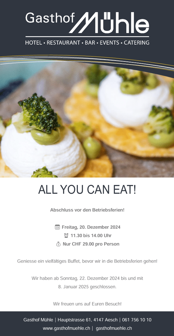 Freitag, 20. Dezember 2024 von 11.30 Uhr bis 14.00 Uhr.